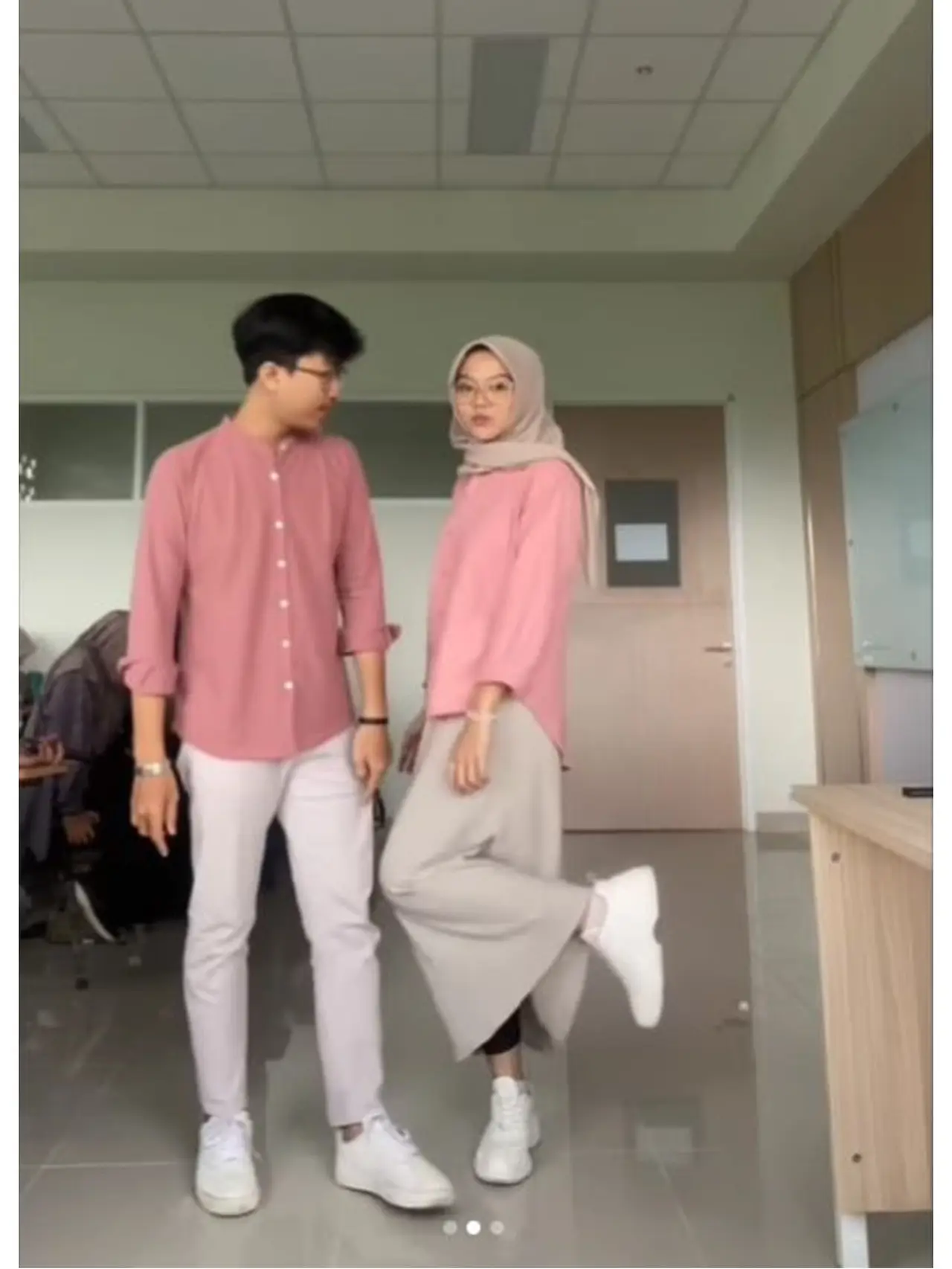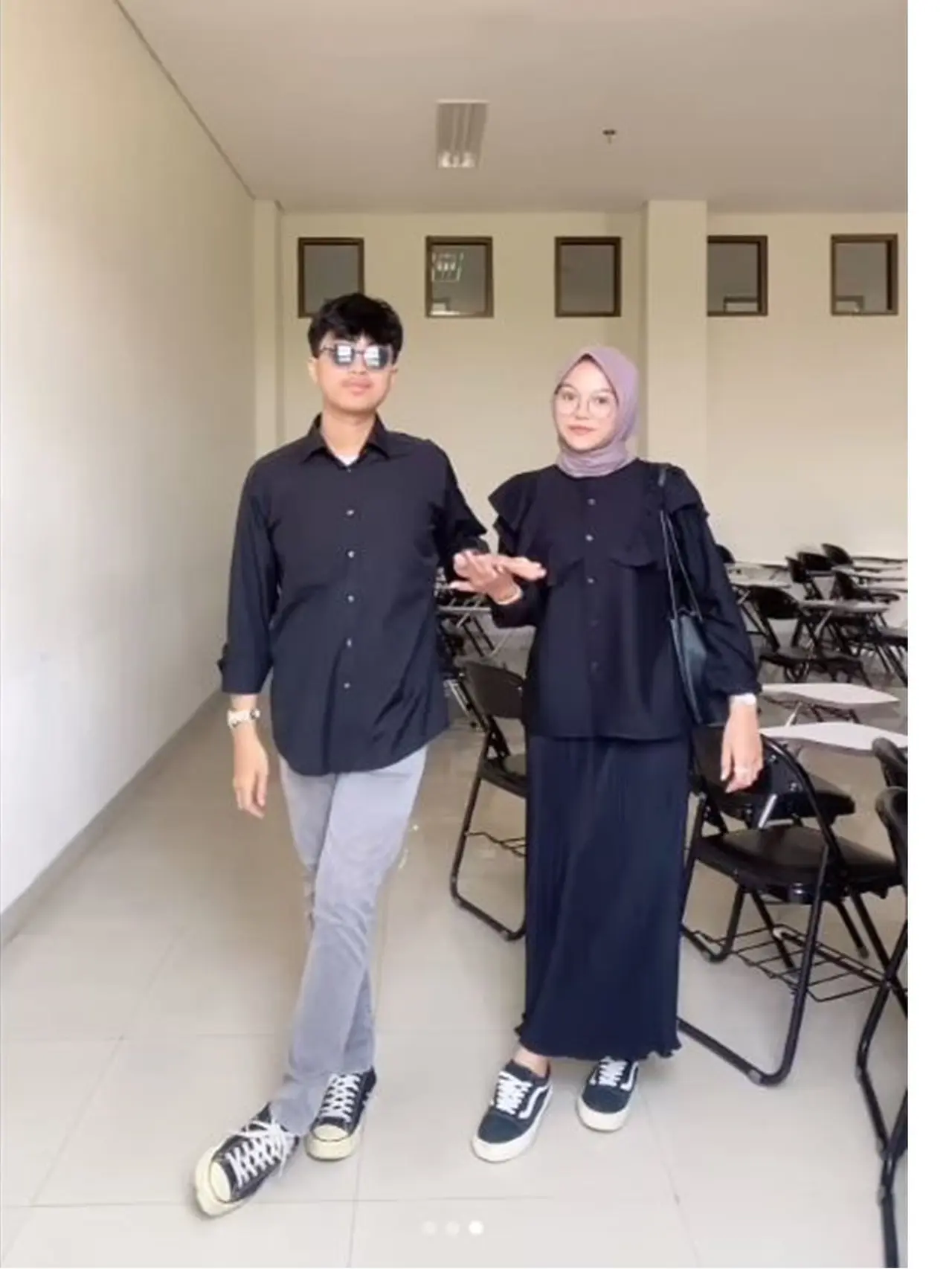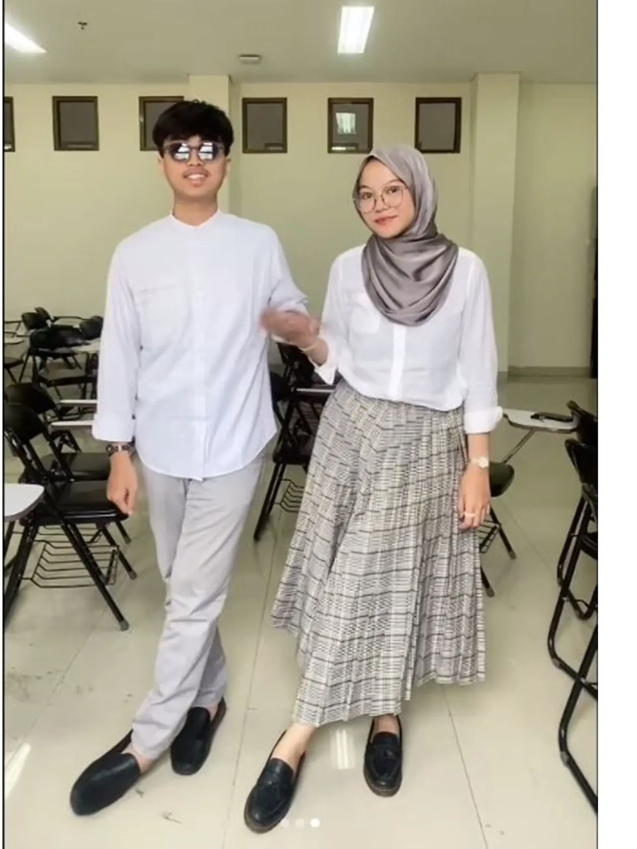 Pasangan itu tampil percaya diri memakai baju senada saat pergi ke kampus. Dalam video yang diunggah ulang oleh laman Instagram @abouthetic, pasangan itu sering pakai baju couple saat belajar di kampus.