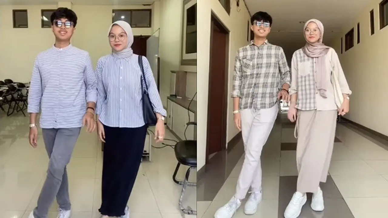 Acara lain selain kondangan, biasanya ditemukan di konser atau tempat wisata, ketika pasangan sedang liburan bareng. Namun, ada yang berbeda dari pasangan kekasih yang satu ini. Dalam unggahan laman TikTok Cokopaii, terlihat pasangan kekasih yang memakai baju couple saat kuliah.