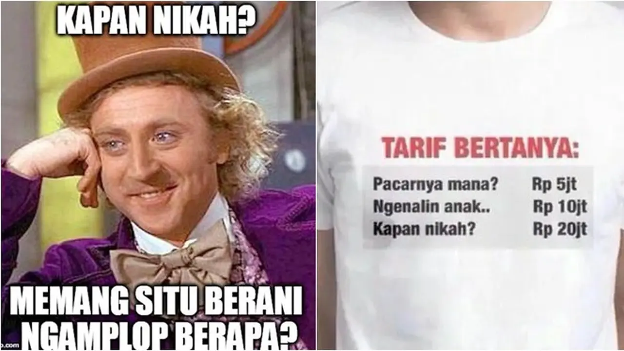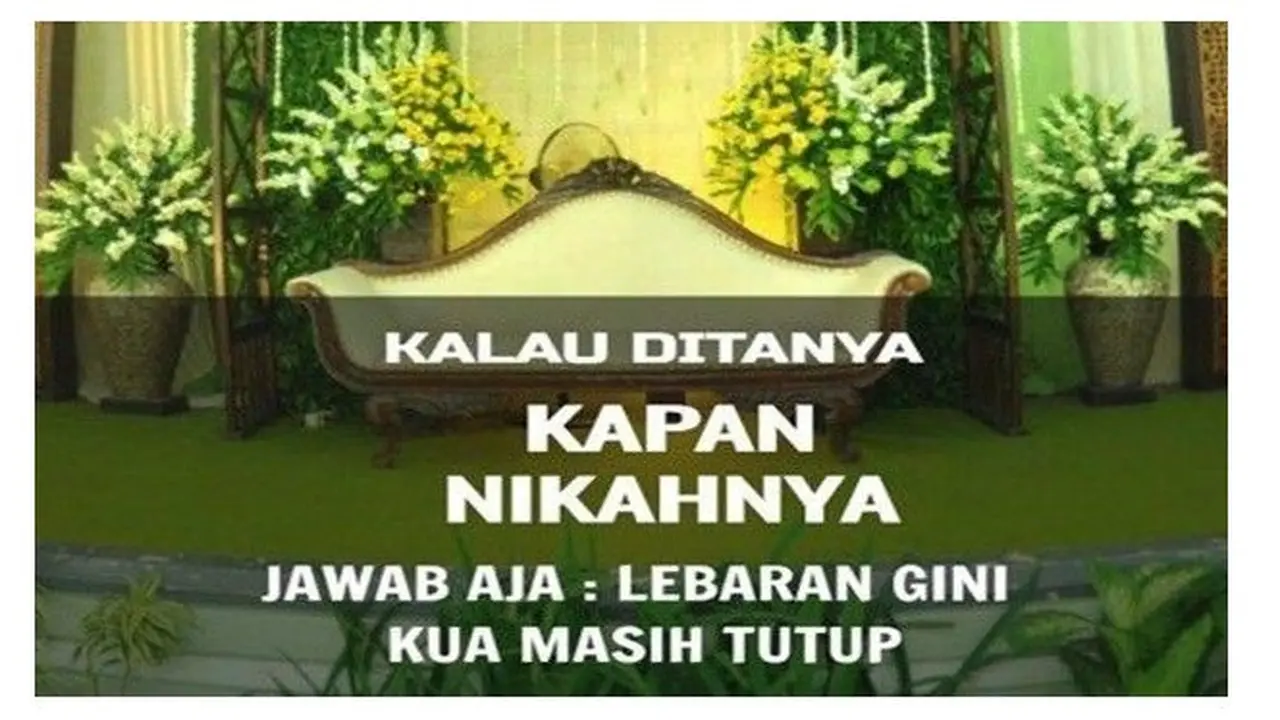 Tak sedikit pula netizen yang mencurahkan isi hatinya terkait dengan pertanyaan kapan nikah di media sosial. Bahkan, kini banyak pula meme mengenai 'kapan nikah' yang tersebar sebagai bentuk hiburan. Tak hanya itu saja, jawaban dalam meme 'kapan nikah' ini mungkin bisa jadi kunci persiapan saat lebaran tiba.